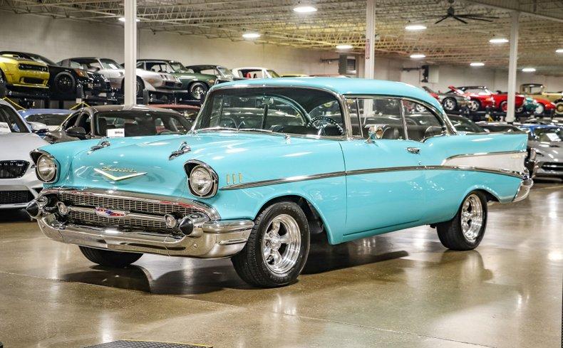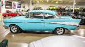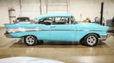 We are pleased to offer this 1957 Chevrolet Bel Air, finished in Tropical Turquoise over a black interior. This classic Tri-Five has been with the same owner since 1984 and is powered by a 283ci V8 with triple 2-barrel carburetors, paired to a 4-speed manual transmission with Hurst floor shifter. A 3.55 rear end, dual exhaust, and front disc brakes add both performance and drivability. The car rides on American Racing wheels, giving it a period street-machine stance.…