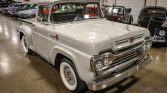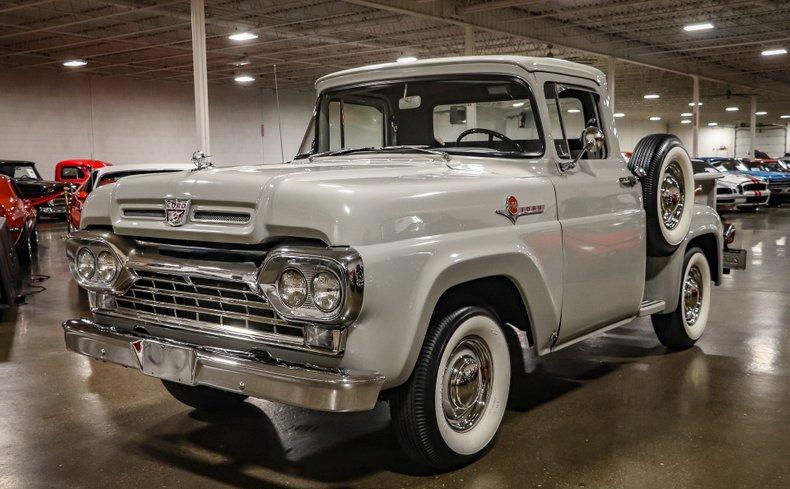 We are pleased to offer this 1960 Ford F100, showing 16,019 miles and finished in light gray with a silver-accented interior. Power comes from a dependable 302ci V8 paired with an automatic transmission and power steering, making it easy to drive and enjoy. This classic pickup features a fiberglass tilt front clip, wood bed, and vintage-style whitewall tires that capture its period charm. The interior is clean and simple, complementing the truck’s timeless styling. A well-kept and tastefully…