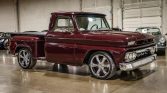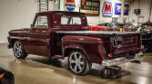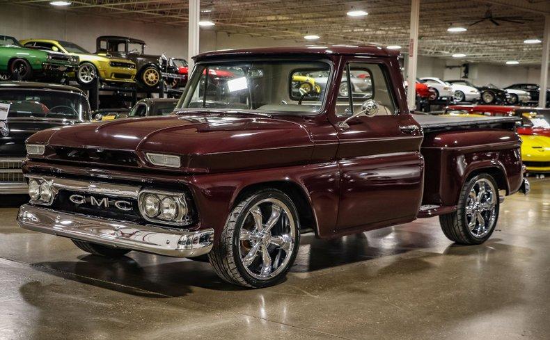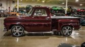 We are pleased to offer this 1965 GMC C10 Stepside finished in a deep maroon exterior with a custom upholstered tan interior. Power comes from a 350ci V8 equipped with FloTech headers and MSD ignition, paired with a Turbo 350 automatic transmission with B&M shift kit for strong performance. This truck is also upgraded with disc brakes for reliable stopping power. The classic styling of the Stepside body combined with tasteful upgrades makes this GMC both a head-turner and a pleasure to drive. A sharp vintage pickup ready to enjoy on the road or at shows.