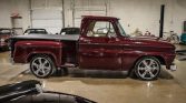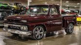 We are pleased to offer this 1965 GMC C10 Stepside finished in a deep maroon exterior with a custom upholstered tan interior. Power comes from a 350ci V8 equipped with FloTech headers and MSD ignition, paired with a Turbo 350 automatic transmission with B&M shift kit for strong performance. This truck is also upgraded with disc brakes for reliable stopping power. The classic styling of the Stepside body combined with tasteful upgrades makes this GMC both a head-turner…