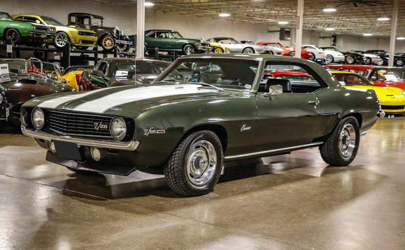 We are pleased to offer this 1969 Chevrolet Camaro Z/28, fully restored and finished in green over a black interior. Power comes from a strong 383ci stroker V8 paired with a 4-speed Muncie transmission and a 4.11 rear end, delivering serious performance. This Z/28 is also equipped with muffler cutouts, allowing the exhaust note to go from street to track at the flip of a switch. The restoration showcases crisp body lines, excellent trim, and a clean interior…