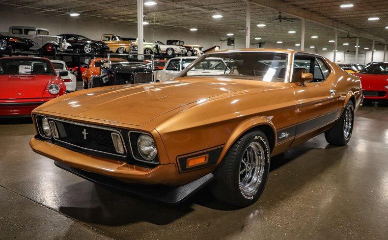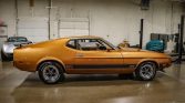 We are pleased to offer this 1973 Ford Mustang Mach 1 SportsRoof finished in rare Saddle Bronze Metallic. Powered by a 302 V8 paired with a C4 automatic transmission, it delivers smooth and dependable performance. This Mach 1 retains its classic styling with bold fastback lines and period-correct details. Documentation includes a Marti Report, confirming its authenticity and original equipment. A sharp and collectible Mach 1, ready to be enjoyed by its next enthusiast.